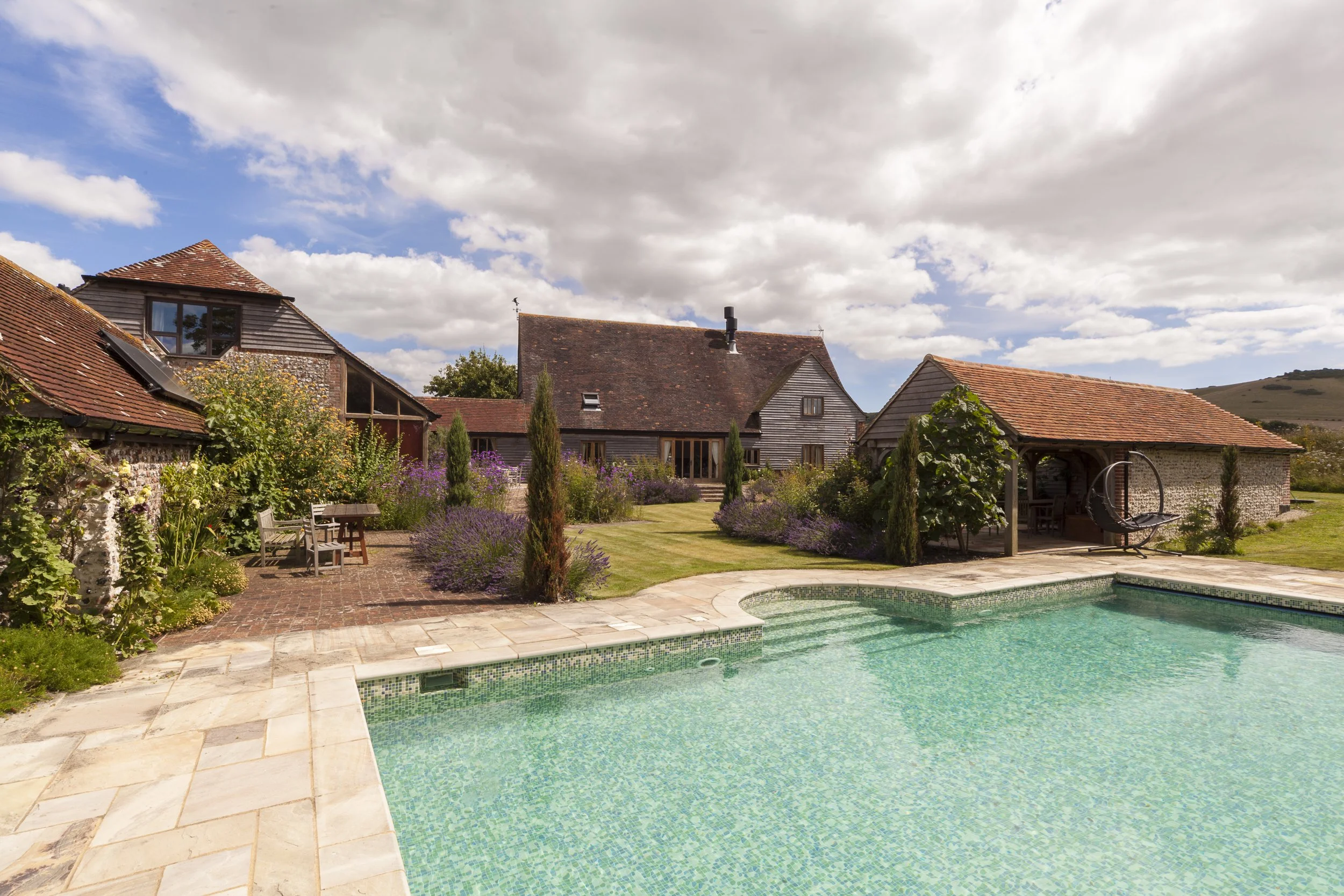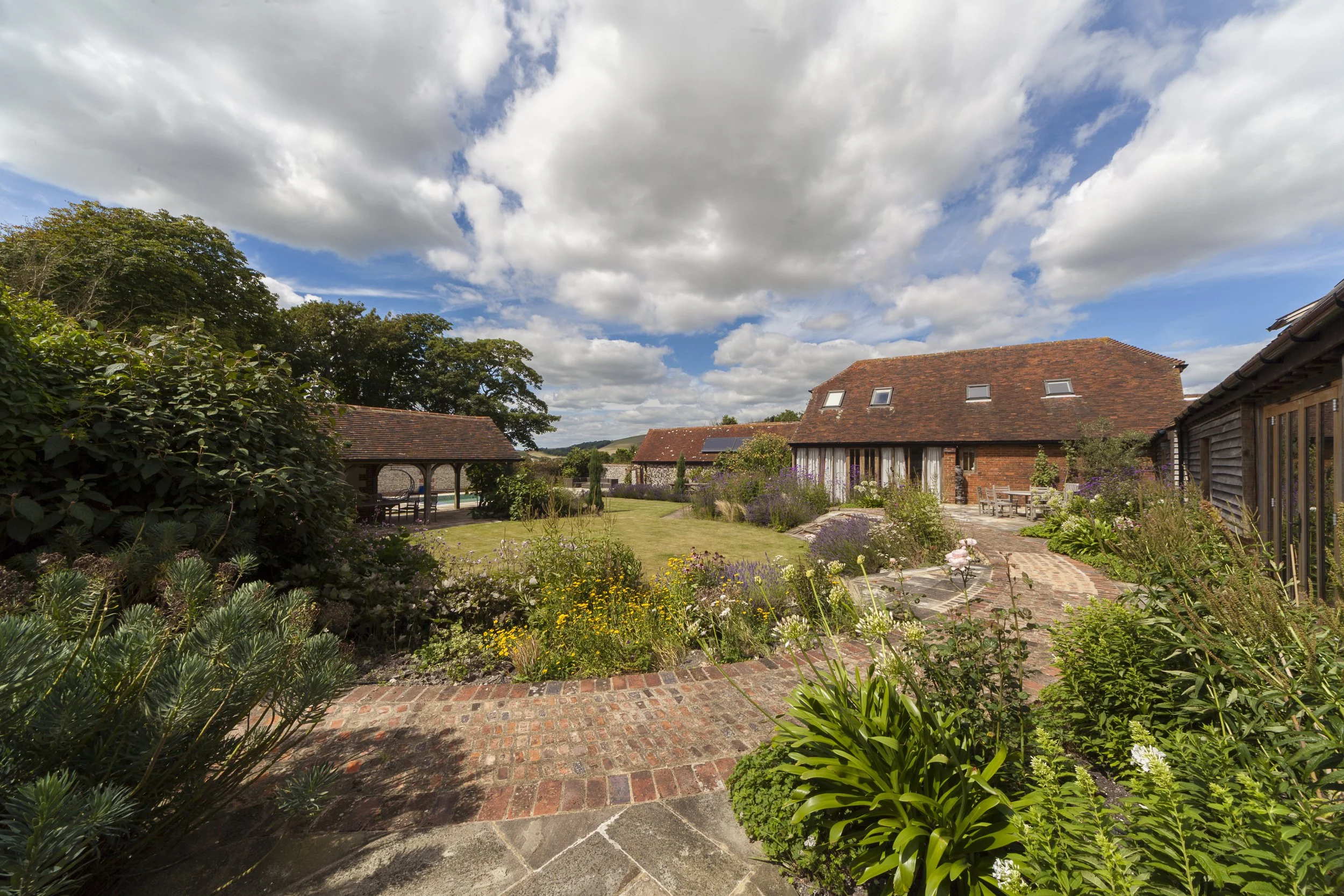 Originally a farmland barn with surrounding land rather than a garden, our clients had embarked upon an extensive renovation project and were keen to create a garden to sit within the expansive surroundings of open farmland and panoramic rolling downlands.
