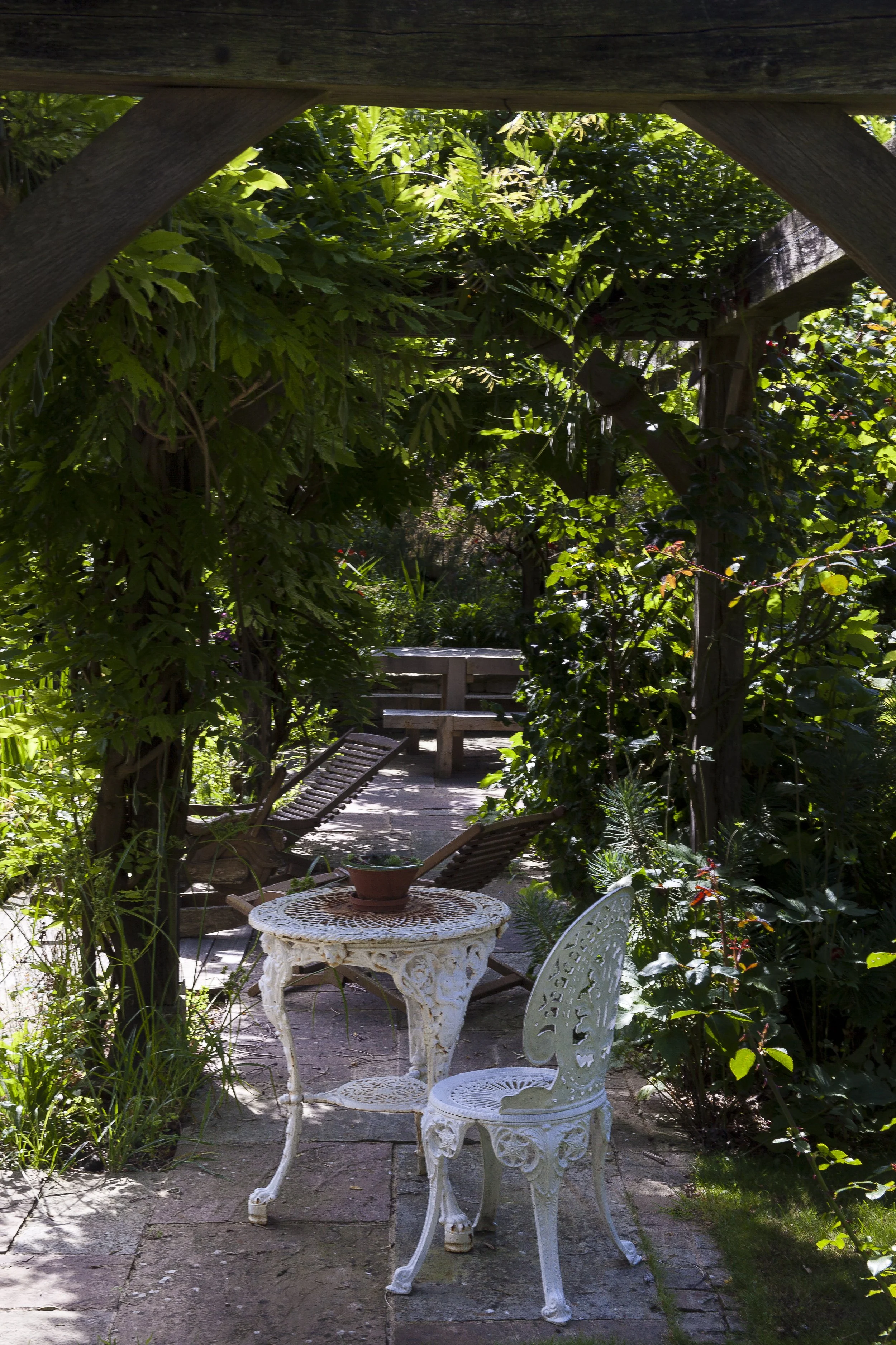 A bespoke oak arbour walkway, dripping with wisteria and ornamental grape vines leads to the wildflower meadow. This garden is a child’s wonderland, with hidden mown paths running through the wildflower meadow to our signature grass spiral mound.